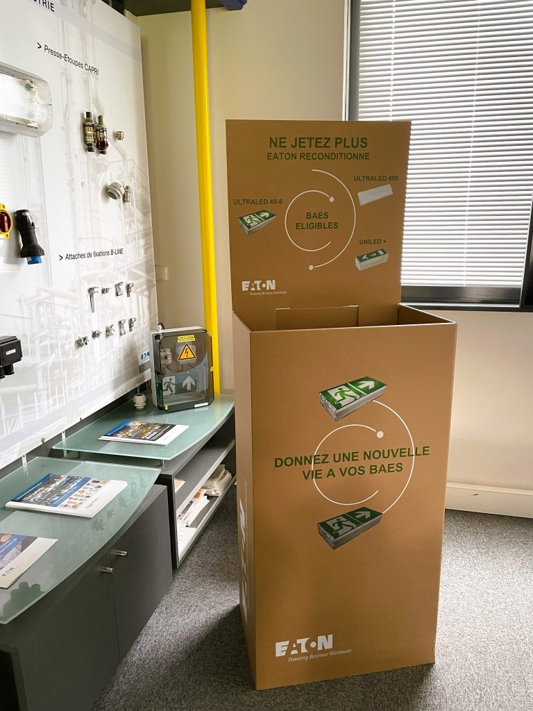 Quand deux entreprises partagent une vision, les projets prennent du sens : Santerne Clermont-Ferrand s’engage au côté d’Eaton pour le reconditionnement de BAES (Blocs Autonomes d’Éclairage de Sécurité).